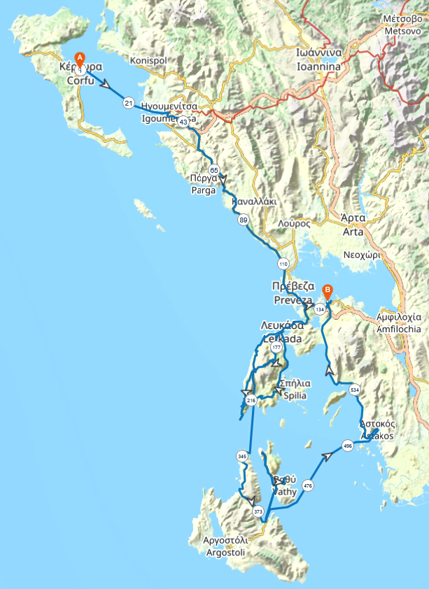 - Transfer Astakos – Vonitsa – Igoumenitsa: 170km, 2h40min